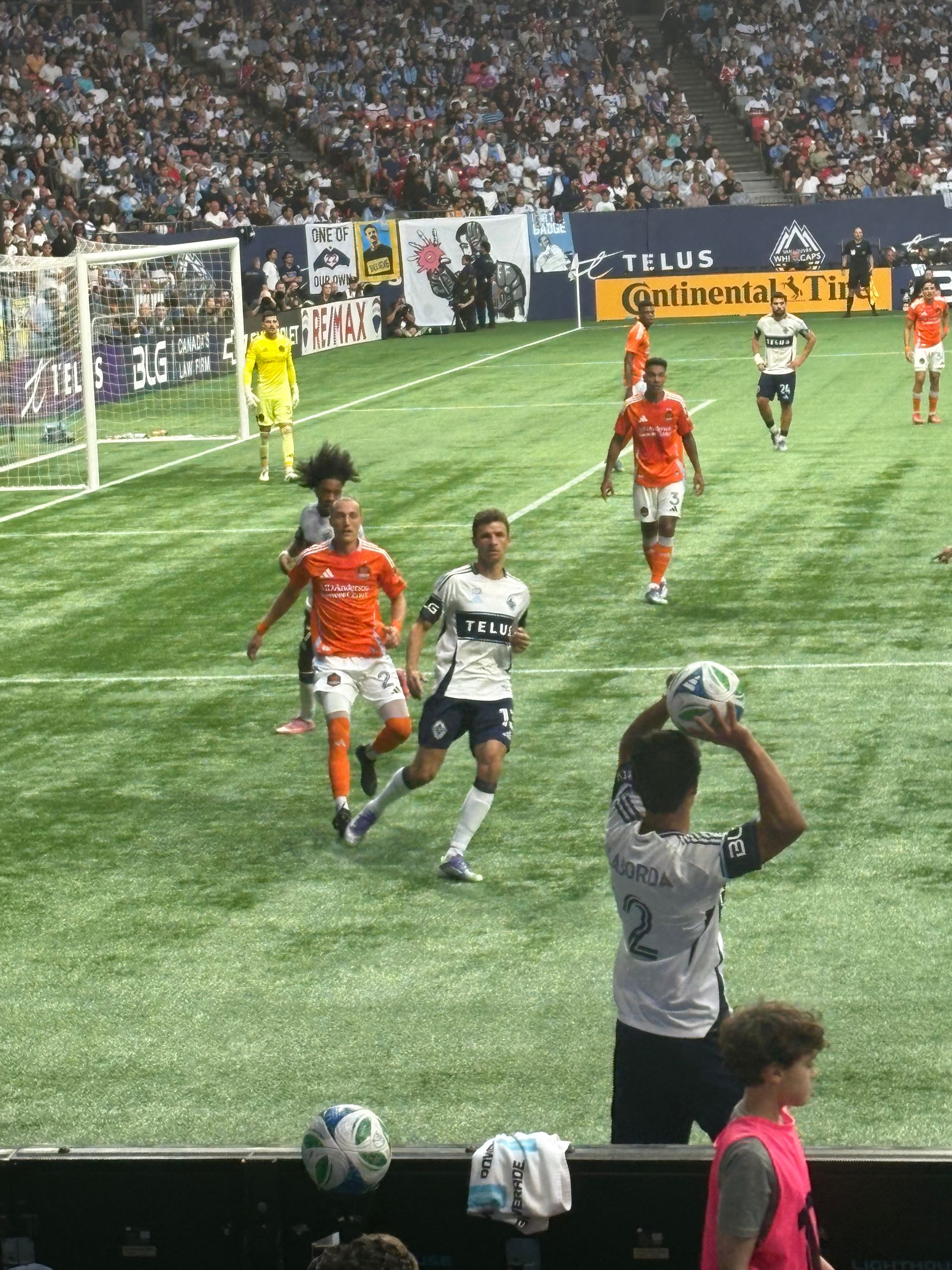 Thomas Muller in his first game for the Whitecaps vs Houston. August 2025.